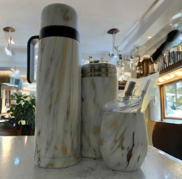 *Flash térmico moderno y yerbero: aislamiento al vacío de doble pared y forro de cobre térmico, este matraz térmico evita que el calor o el frío del exterior se transfieran al interior. A prueba de fugas, ligero y fácil de transportar con un mango cómodo, incluye una boquilla matera para verter fácilmente el liquido.