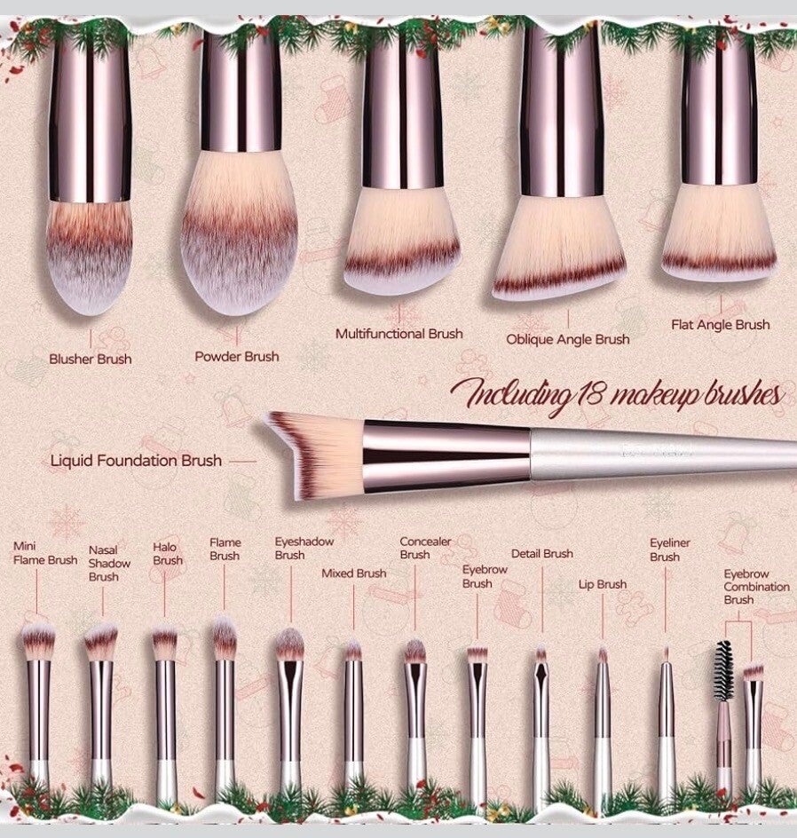 Mejora tu rutina de belleza con este juego de brochas de maquillaje profesional de 18 piezas, diseñado para una aplicación impecable de base líquida, corrector, rubor y sombra de ojos. Perfecto tanto para principiantes como para profesionales